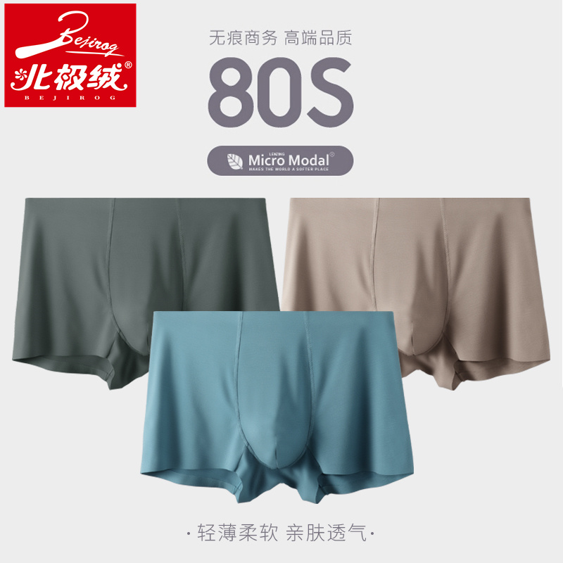 【产品名称:北极绒80支莫代尔内裤男冰丝感四角裤夏季薄款透气无痕平角短裤头】