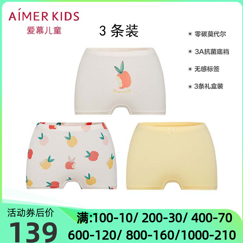 【产品名称:3条装 爱慕儿童正品男童女童孩莫代尔透气薄A类三角平角内裤】
