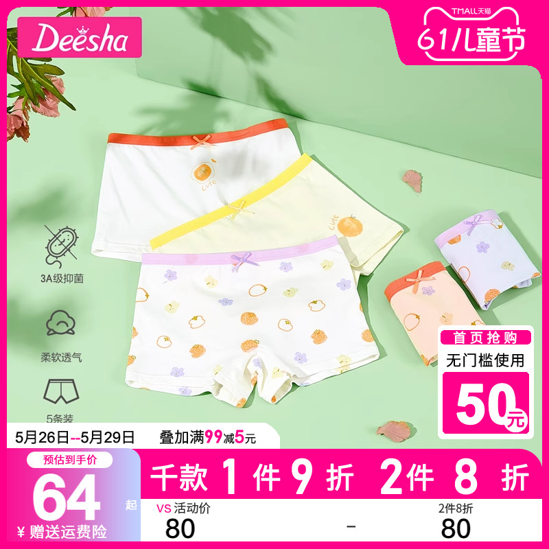 【产品名称:笛莎官方童装女童小内裤2023夏装新款宝宝平角内裤5条组合装迪莎】