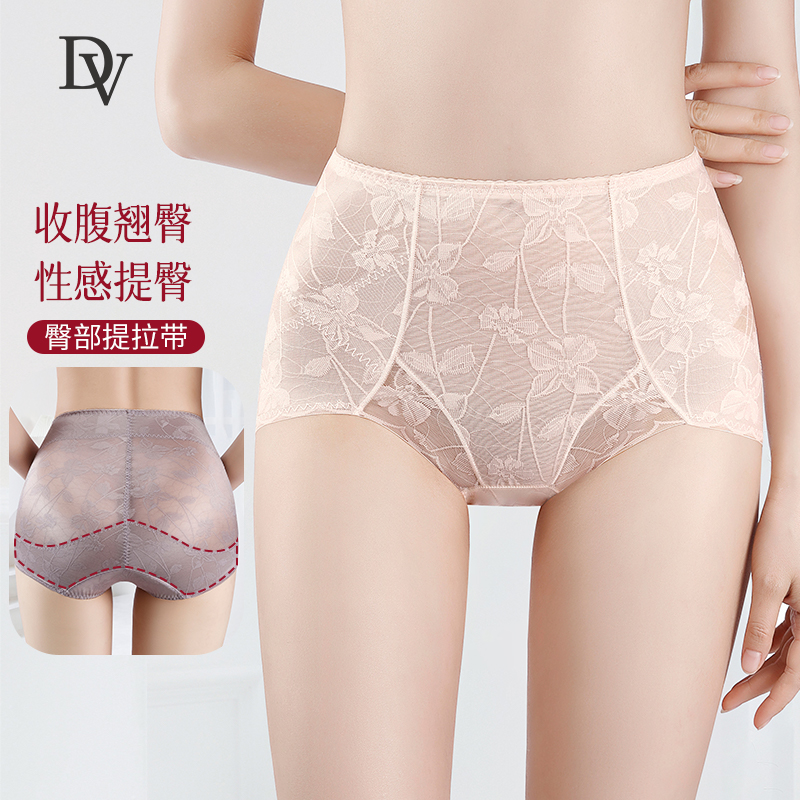 【产品名称:DV高腰内裤女士夏季透气冰丝无痕蕾丝蚕丝裆胖MM大码内衣三角短裤】