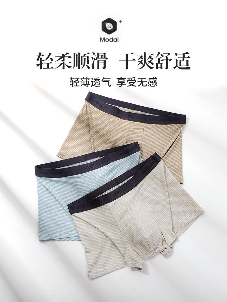 【产品名称:男士内裤莫代尔平角内裤男生夏季条纹冰丝凉感抑菌透气运动套装】
