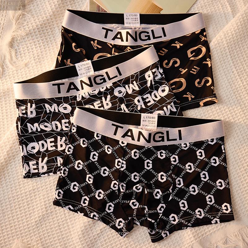 【产品名称:新款冰丝男士内裤男生夏季薄款透气四角短裤青年潮流个性印花】