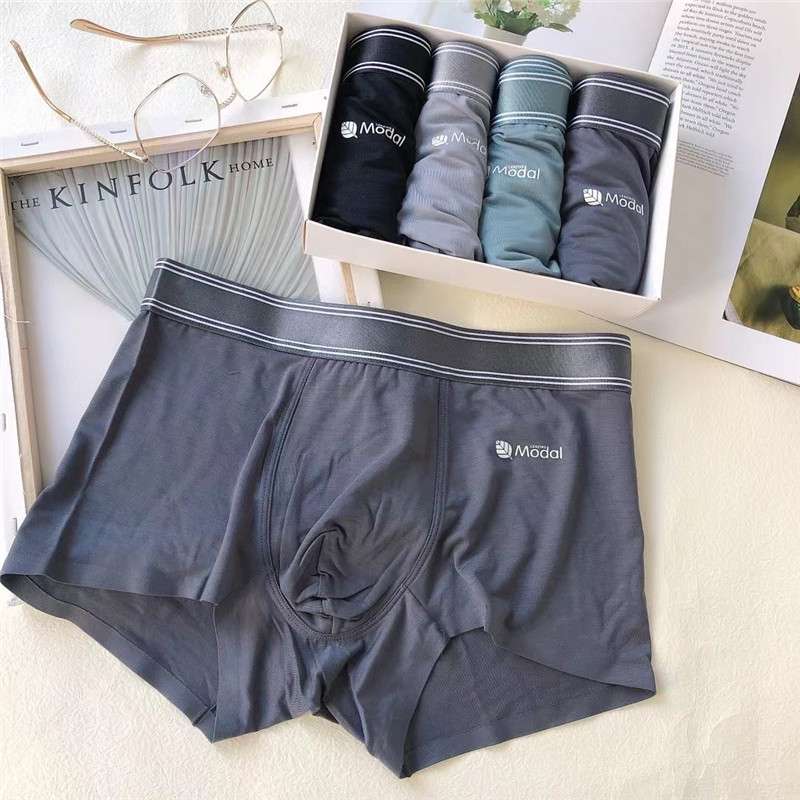 【产品名称:4条装惠芝欣9090莫代尔面料男士内裤抗菌透气薄款青年纯色平角裤】
