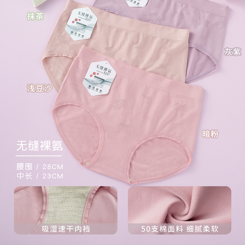 星念梦8305女内裤无缝裸安大码高腰艾草抗菌裆胖MM加肥高弹三角裤