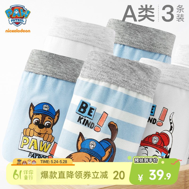 汪汪队男童平角内裤2023新款儿童三条装四角裤宝宝中小童纯棉裤头