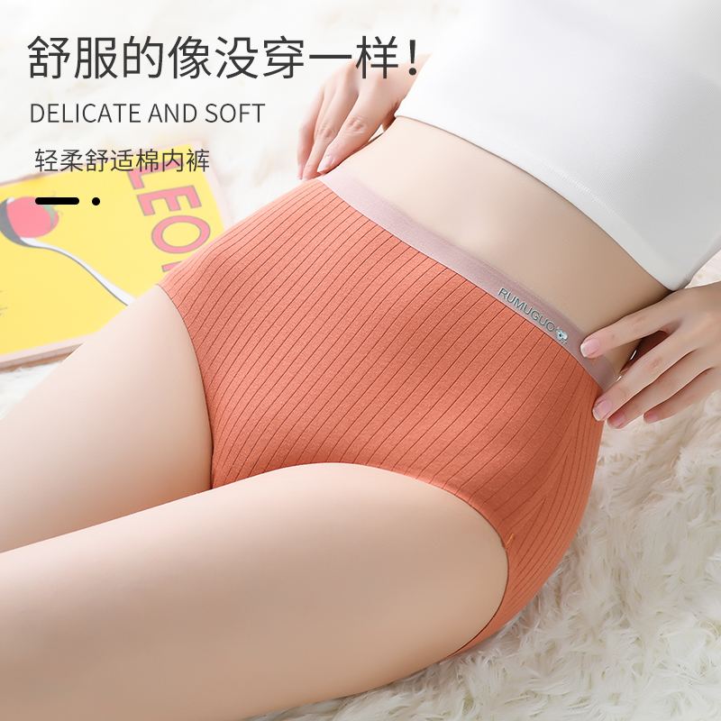 【产品名称:4条装 无痕女士纯棉内裤女中高腰妈妈款全棉裆提臀三角裤薄款透气】
