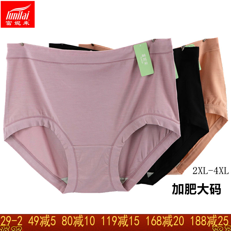 【产品名称:2条 富妮来女士内裤加肥加大码高腰胖MM莫代尔老年人包臀裤头3782】