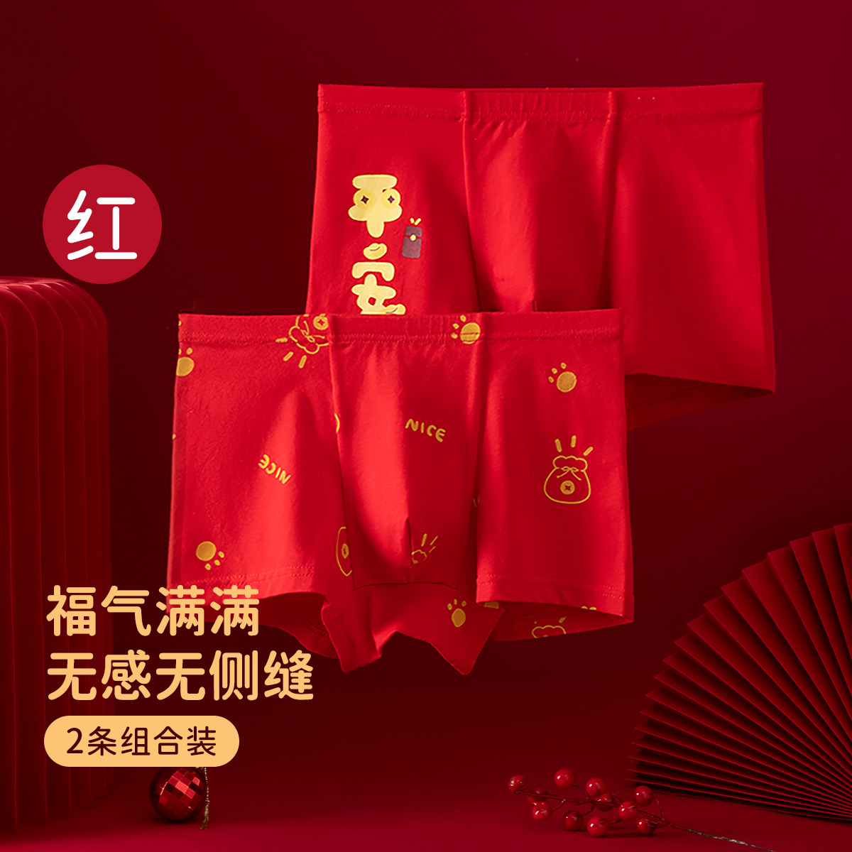 新年儿童本命年红色内裤顶瓜瓜内衣彩棉档男女童中大童底裤平角裤