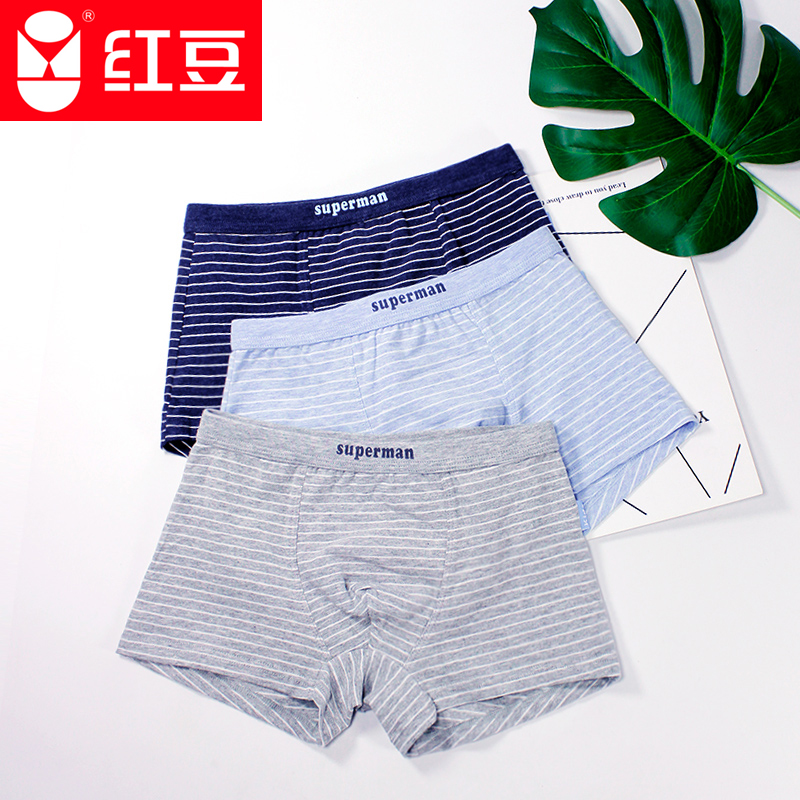 【产品名称:红豆居家中大男儿童纯棉平角内裤条纹印花棉质男孩儿短裤头底裤】