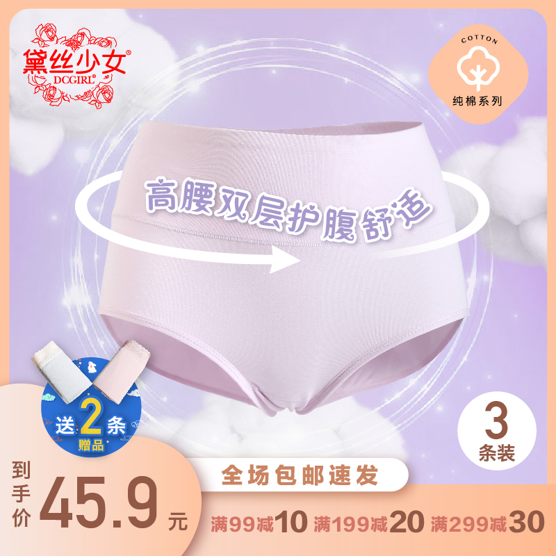 【产品名称:3条黛丝少女内裤女纯棉女士无痕高腰收腹提臀透气舒适三角底裤女】