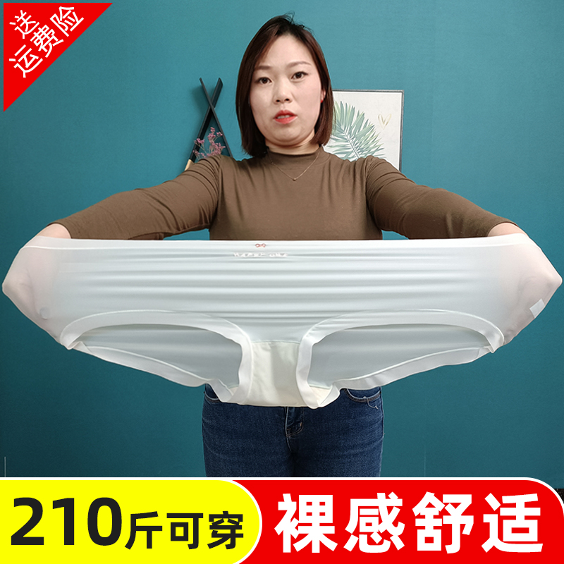 【产品名称:冰丝内裤女大码薄款200斤胖mm加肥加大性感透明女士夏季中腰300斤】