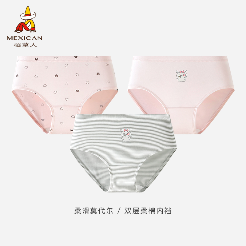 【产品名称:3条装稻草人中大女儿童莫代尔三角内裤A级抑菌内裆薄款女孩短裤头】