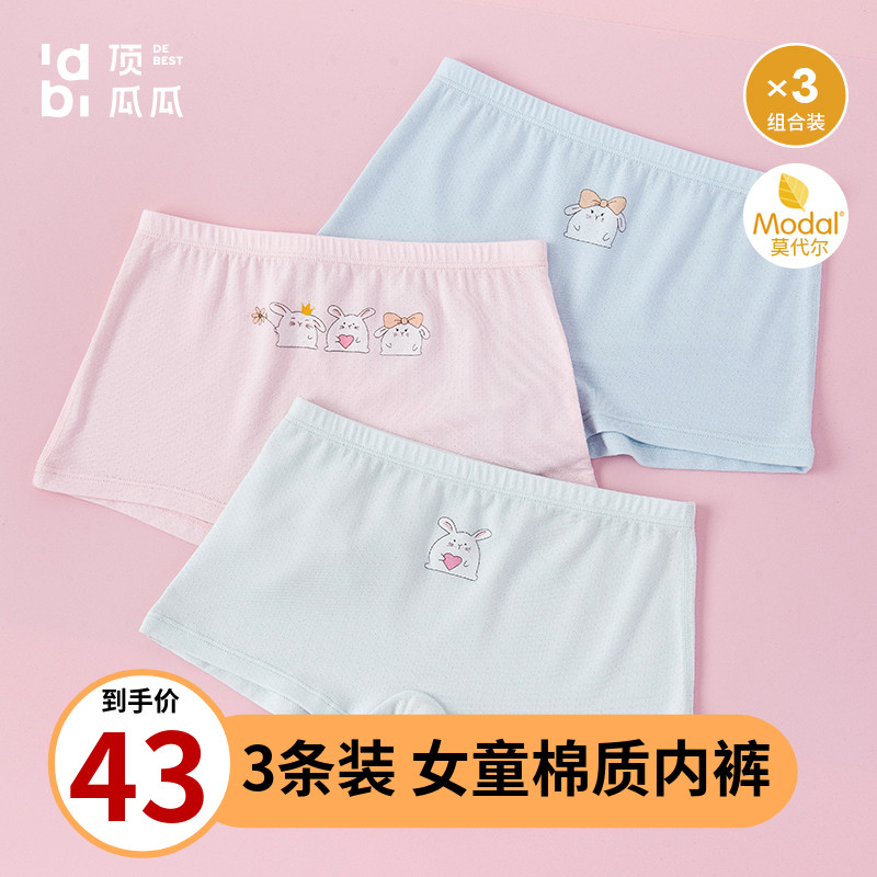【产品名称:3条莫代尔棉儿童女童平角内裤少女中大童安全裤顶瓜瓜网眼薄款】