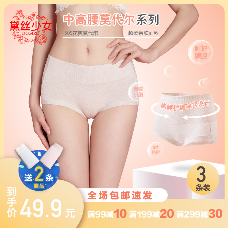 【产品名称:黛丝少女内裤50支兰精莫代尔无痕女士高腰柔软舒适三角底裤3条装】