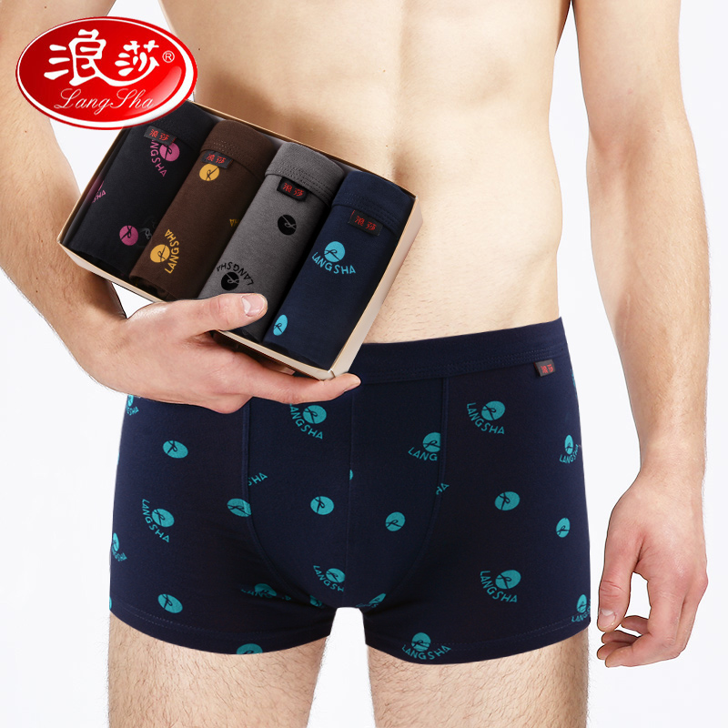 【产品名称:浪莎平角裤男士纯棉中腰内裤衩透气青年潮流印花新疆棉抗菌短裤头】
