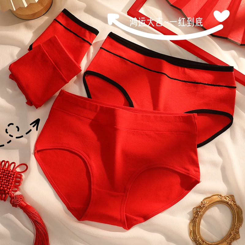 【产品名称:红色内裤女纯棉提臀收腹舒适女生中腰少女新款本命年女士三角裤头】