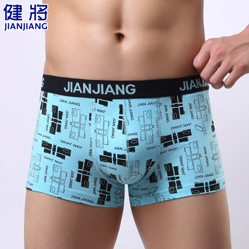 【产品名称:健将男士内裤男透气纯棉平角裤弹力棉短裤印花潮男式青年四角裤头】