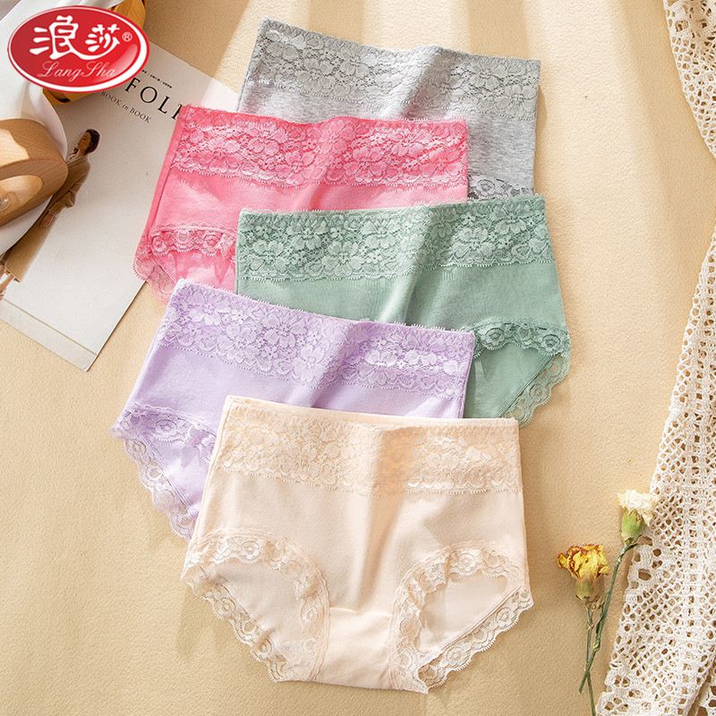 【产品名称:浪莎内裤女士纯棉高腰收腹短裤衩少女学生日系蕾丝边三角裤头4条】