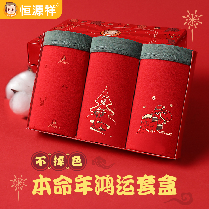 【产品名称:恒源祥儿童红色本命年内裤纯棉中大童男童短裤12岁男孩四角平裤】