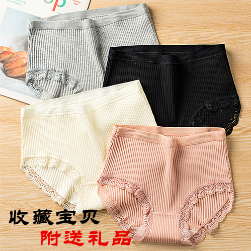 【产品名称:高腰内裤女纯棉全棉裆100%透气收腹性感蕾丝边大码胖mm女士三角裤】