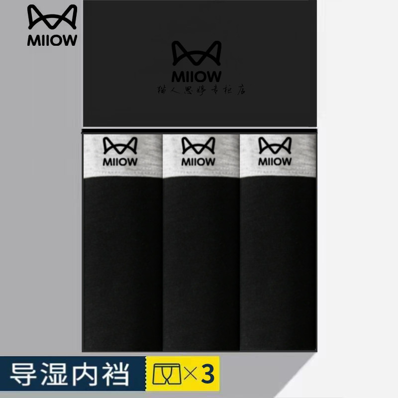 【产品名称:猫人正品男士内裤黑色莫代尔纯棉透气平角裤男生运动四角裤衩四季】