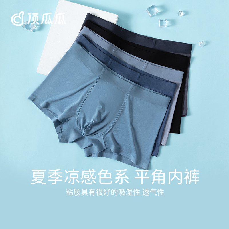 【产品名称:3条顶瓜瓜夏季薄款男内裤凉感平角纯色冰丝短裤大码四角裤衩中腰】