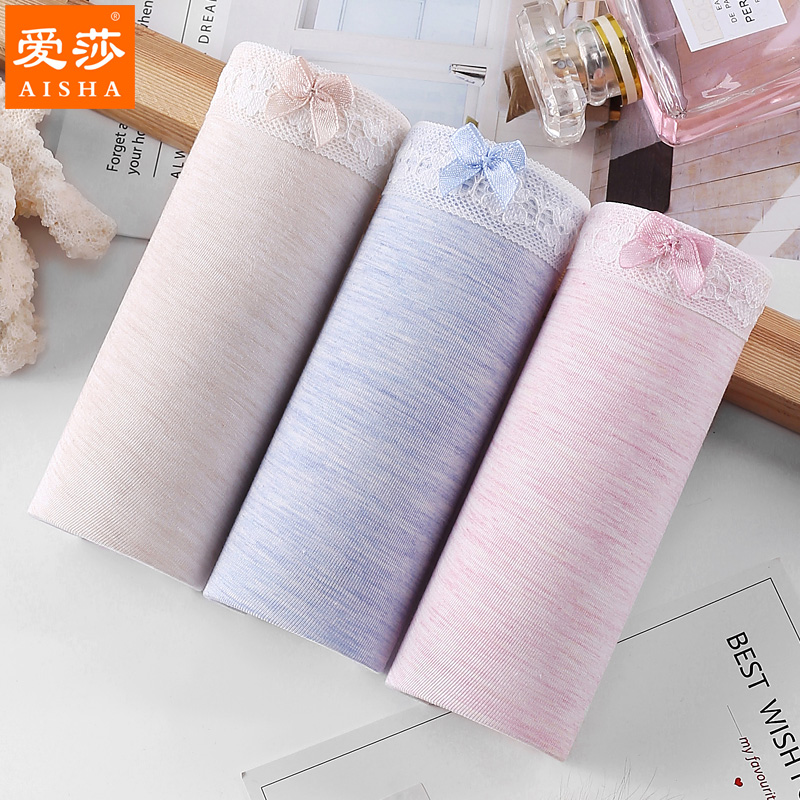 【产品名称:爱莎内裤女透气莫代尔花纱性感蕾丝中腰大码短裤青年女士三角裤头】