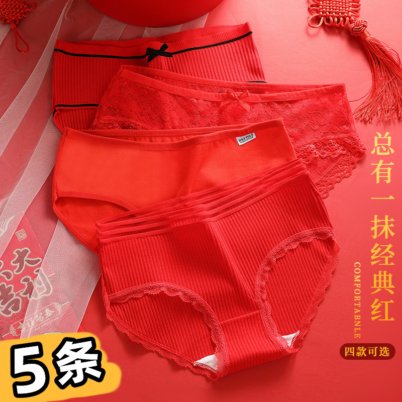 【产品名称:兔年本命年大红色内裤女士纯棉少女生学生全棉三角裤属兔短裤头】