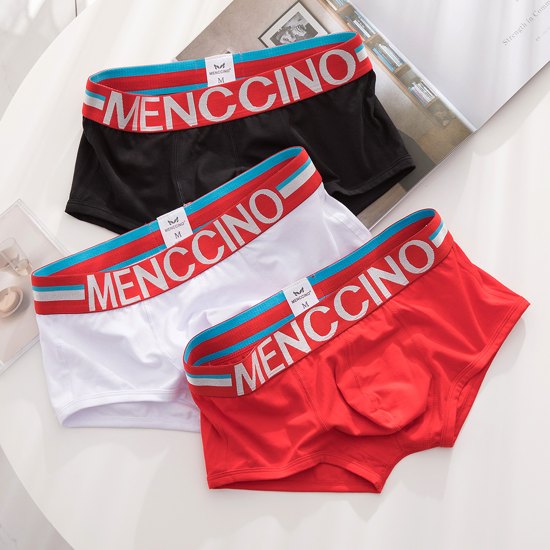 【产品名称:2条装内裤男生四角纯棉短裤男士平脚裤纯色低腰红色青年夏季男款】