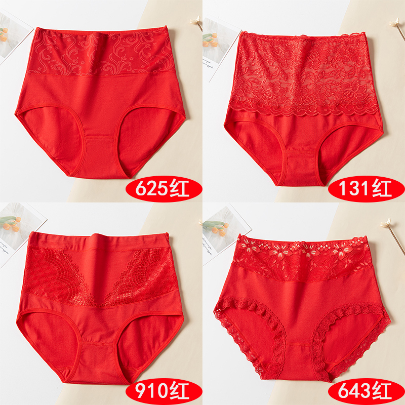 【产品名称:咔木拉四条大红色高腰女士内裤女纯棉妈妈本命年喜庆三角结婚牛虎】