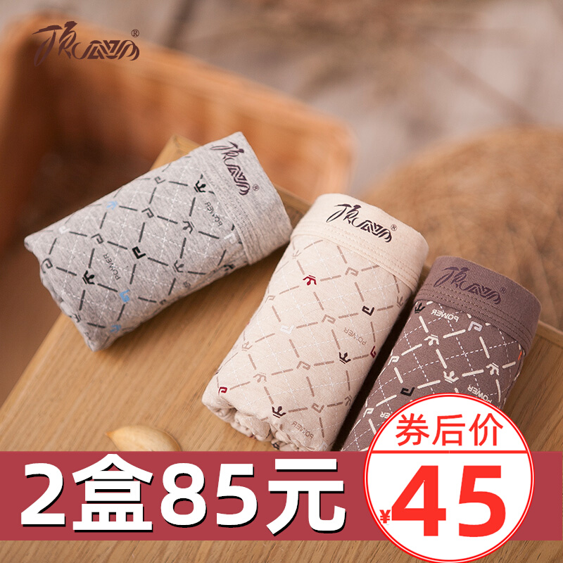 【产品名称:3条盒装顶瓜瓜男士内裤中腰全纯棉平角四角大码底裤头顶呱呱彩棉】