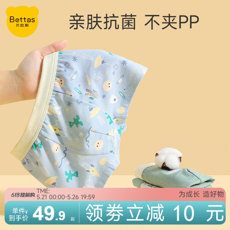 【产品名称:贝肽斯儿童内裤男童A类抗菌三四角短裤中小女童纯棉亲肤不夹屁屁】