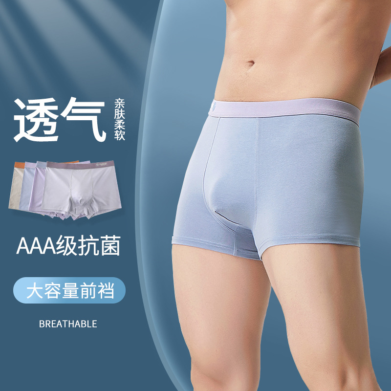 Y猫人120支冰丝男士内裤桑蚕丝抑菌夏季透气无痕平角裤头四角短裤