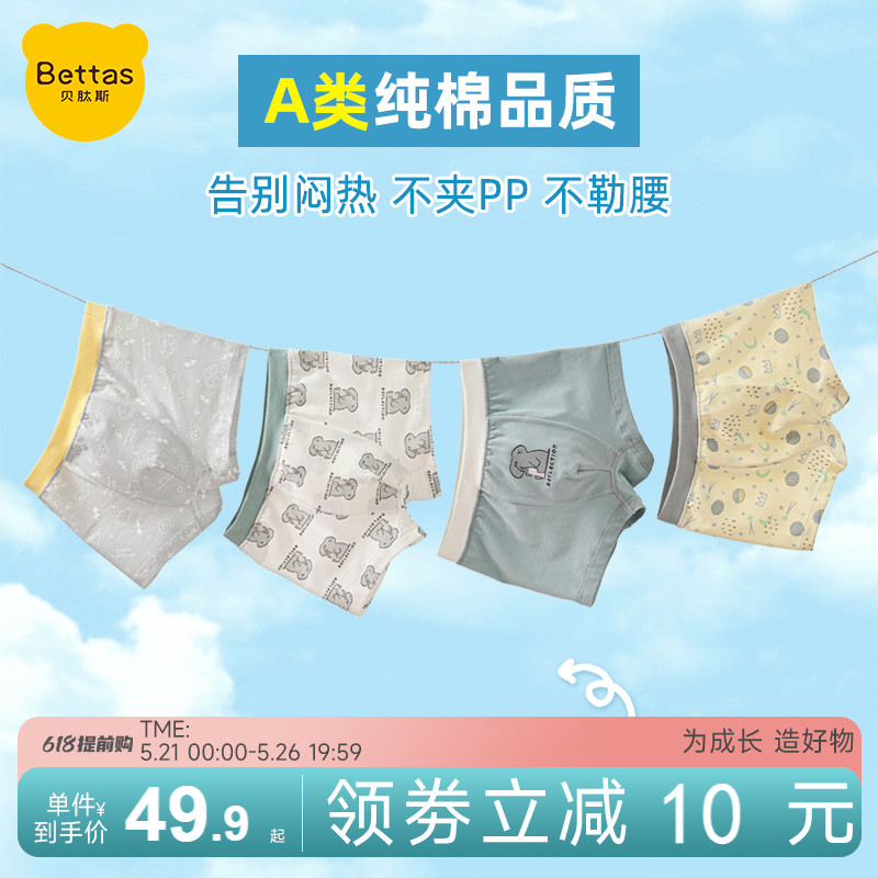 【产品名称:贝肽斯儿童内裤男童宝宝中小童四角短裤纯棉亲肤四季平角打底短裤】