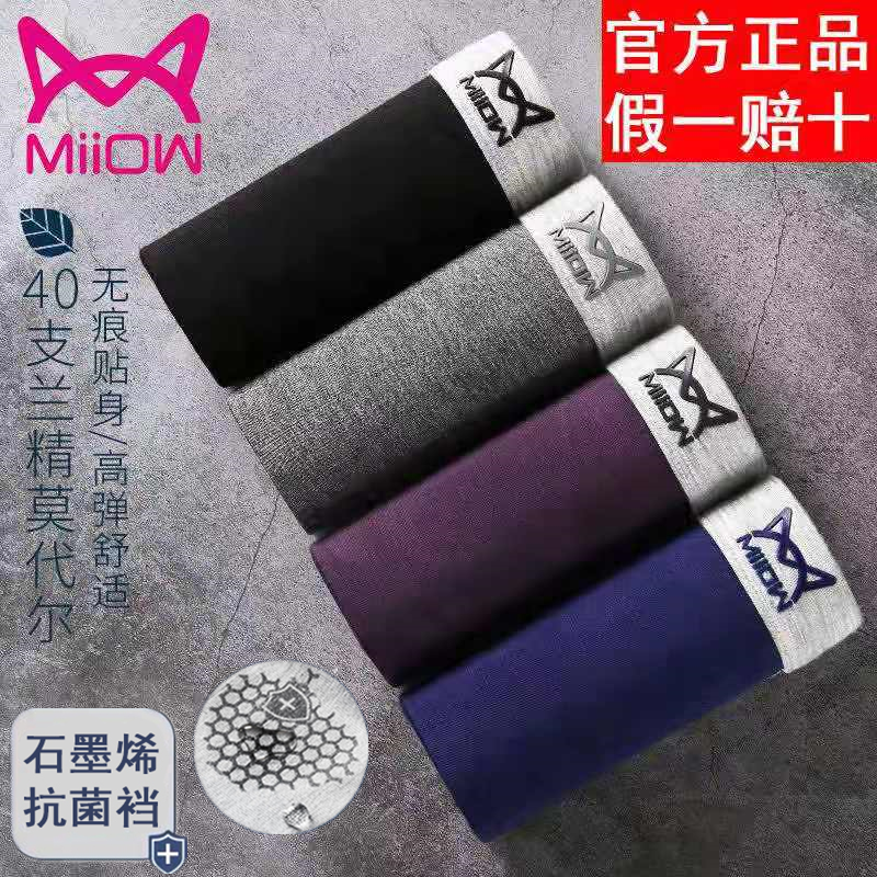【产品名称:猫人内裤男士莫代尔棉日系简约纯棉平角短裤头石墨烯抗菌裆四脚裤】