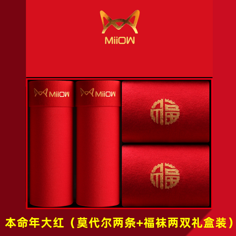 【产品名称:正品猫人本命年内裤男士平角裤纯棉大红色莫代尔石墨烯抗菌四角裤】