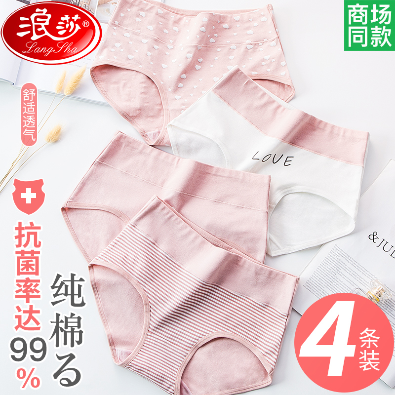 【产品名称:浪莎女士内裤女全棉100%纯棉裆胖mm中腰少女日系印花学生三角短裤】