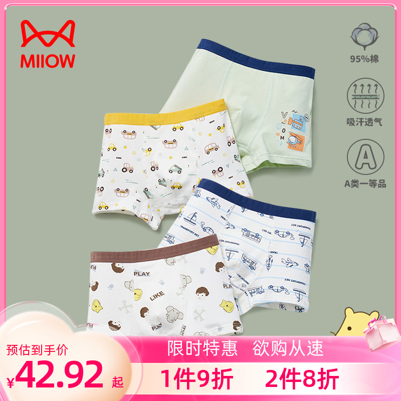 【产品名称:猫人儿童内裤男童夏季薄款纯棉平角四角裤宝宝男小童男孩全棉短裤】