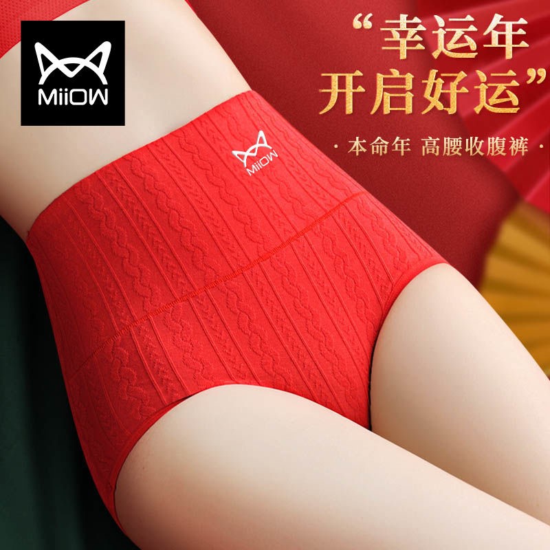 【产品名称:猫人高腰内裤女士本命年大红色纯棉抗菌裆全棉兔年结婚礼物三角裤】