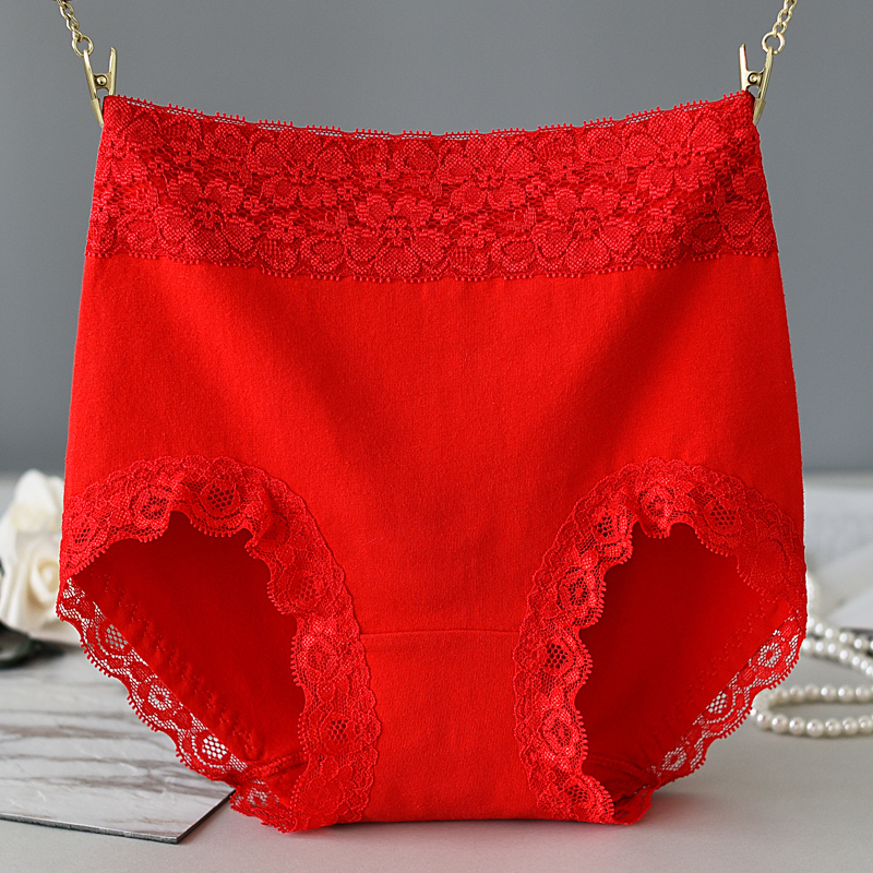 【产品名称:大红色本命年内裤纯棉无痕高腰女士大码属牛年喜庆三角内裤】