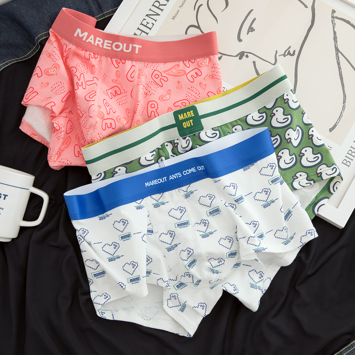 【产品名称:内裤男生纯棉时尚男士内裤四角卡通潮流字母印花平角短裤学生3件】