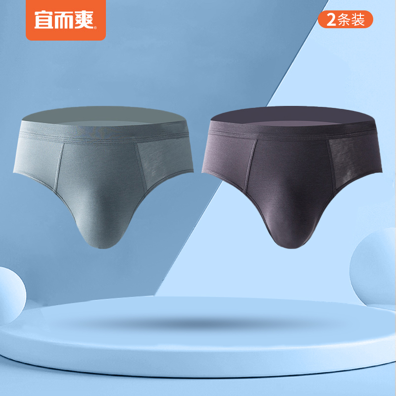 【产品名称:宜而爽三角裤男纯棉中腰U凸裤裆抗菌裤衩透气大码加肥男士内裤】