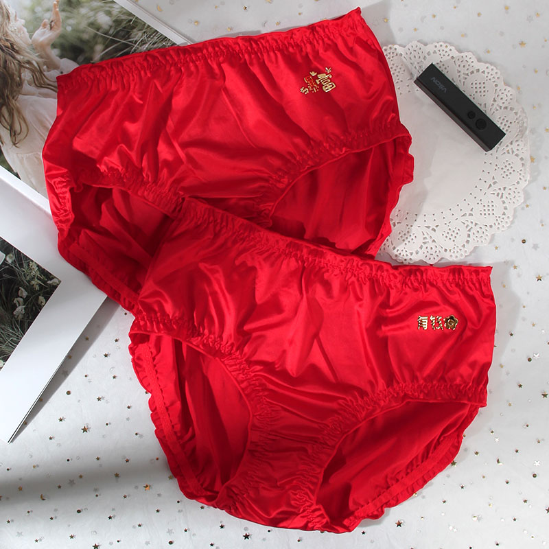 【产品名称:暴富有钱~本命年中国大红色内裤女士高档缎面无痕高腰加肥加大码】