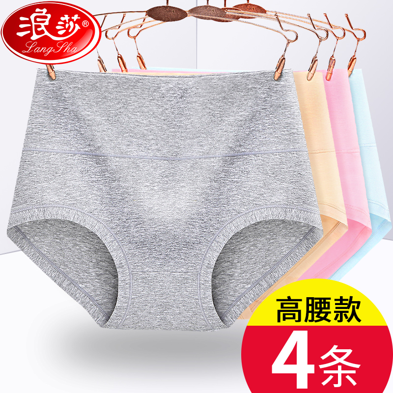 【产品名称:浪莎内裤女100%全棉纯棉裆高腰平角女士内裤中腰加大码胖mm三角裤】