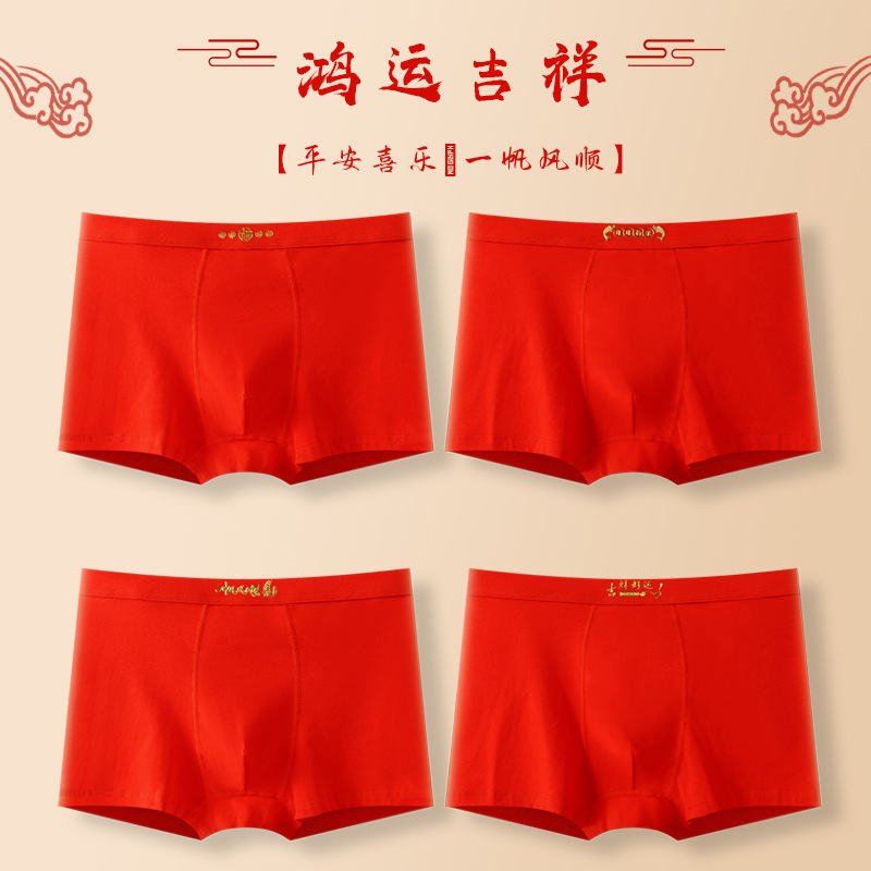 新品纯棉大红男士内裤结婚喜庆本命年男内裤男士纯棉平角裤批发