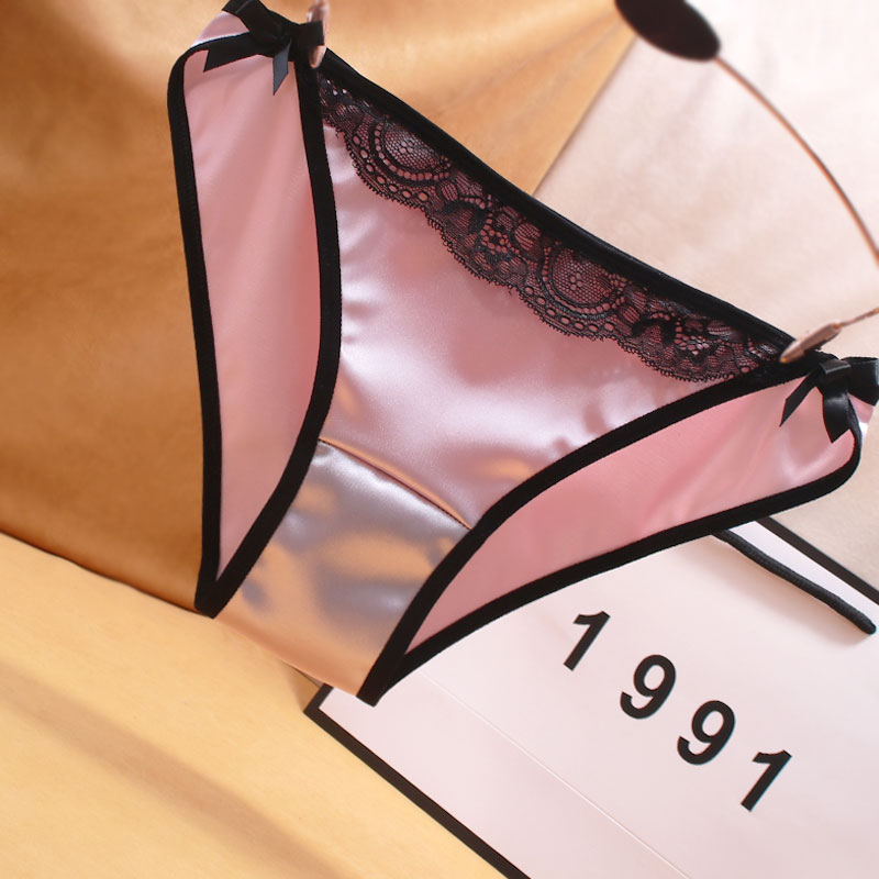 【产品名称:新款内裤女高端缎面女士黑色包边纯棉底裆可爱舒适情调夏季三角裤】
