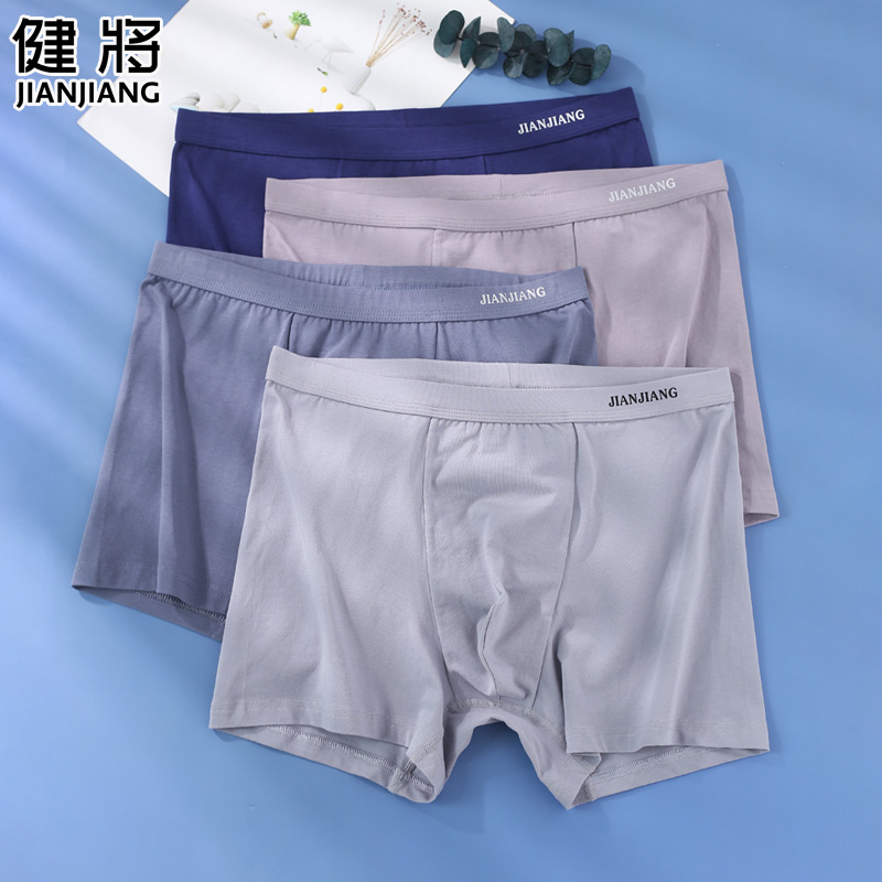 【产品名称:健将男士内裤透气新疆纯棉中腰短裤大码纯色平角裤青年运动四角裤】