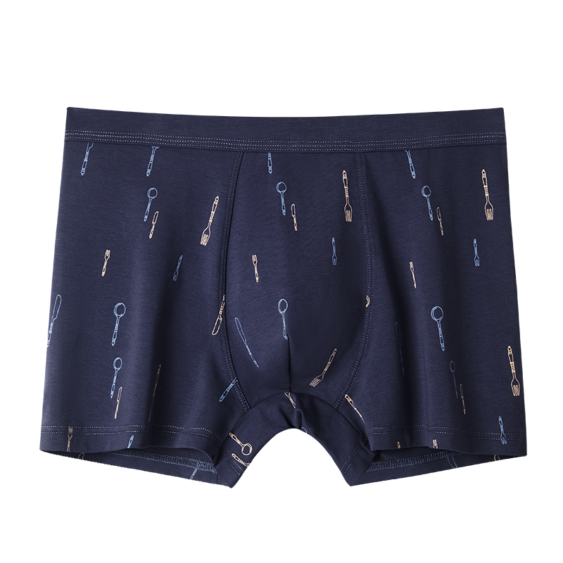 【产品名称:男士内裤男生纯棉裤头男款短裤衩深蓝色四角裤运动底裤男式平角裤】