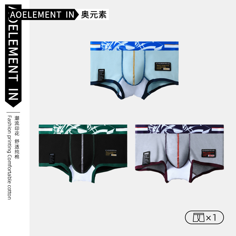 【产品名称:男士内裤男生纯棉裤头男款短裤衩深灰色四角裤简约底裤男式平角裤】
