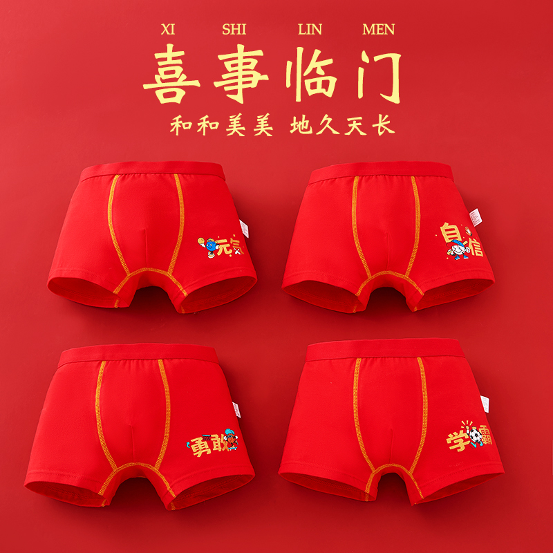 【产品名称:儿童红色内裤男童本命年纯棉短裤中大童12男孩13岁兔年虎年平角裤】